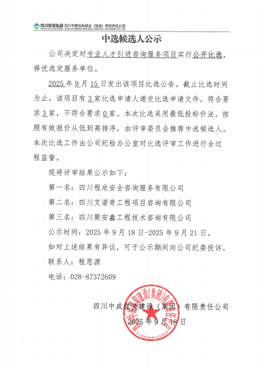 專業(yè)人才引進咨詢服務(wù)項目中選候選人公示